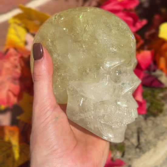 Citrine is known as the “Merchant’s Stone” of abundance, prosperity, and manifestation. It is said to carry the warmth of the sun, bringing joy, vitality, and confidence to its keeper. In skull form, it amplifies higher wisdom, clarity, and connection to the spirit world while grounding that energy into material success.
